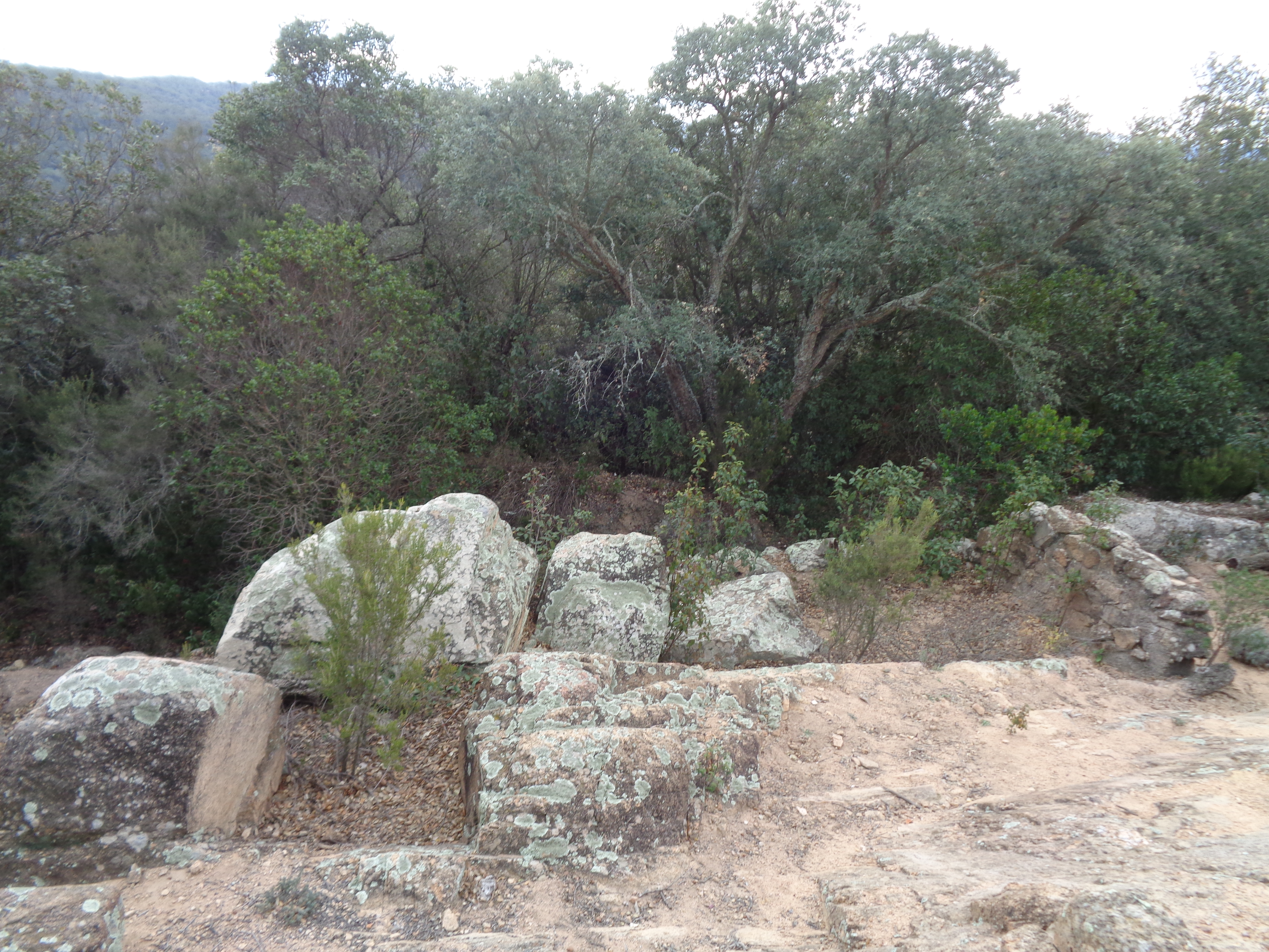 Se accede por una pista forestal y después has de adentrarte por estrechos senderos del bosque llenos de espesa vegetación con encinas, madroños y muchos arbustos.