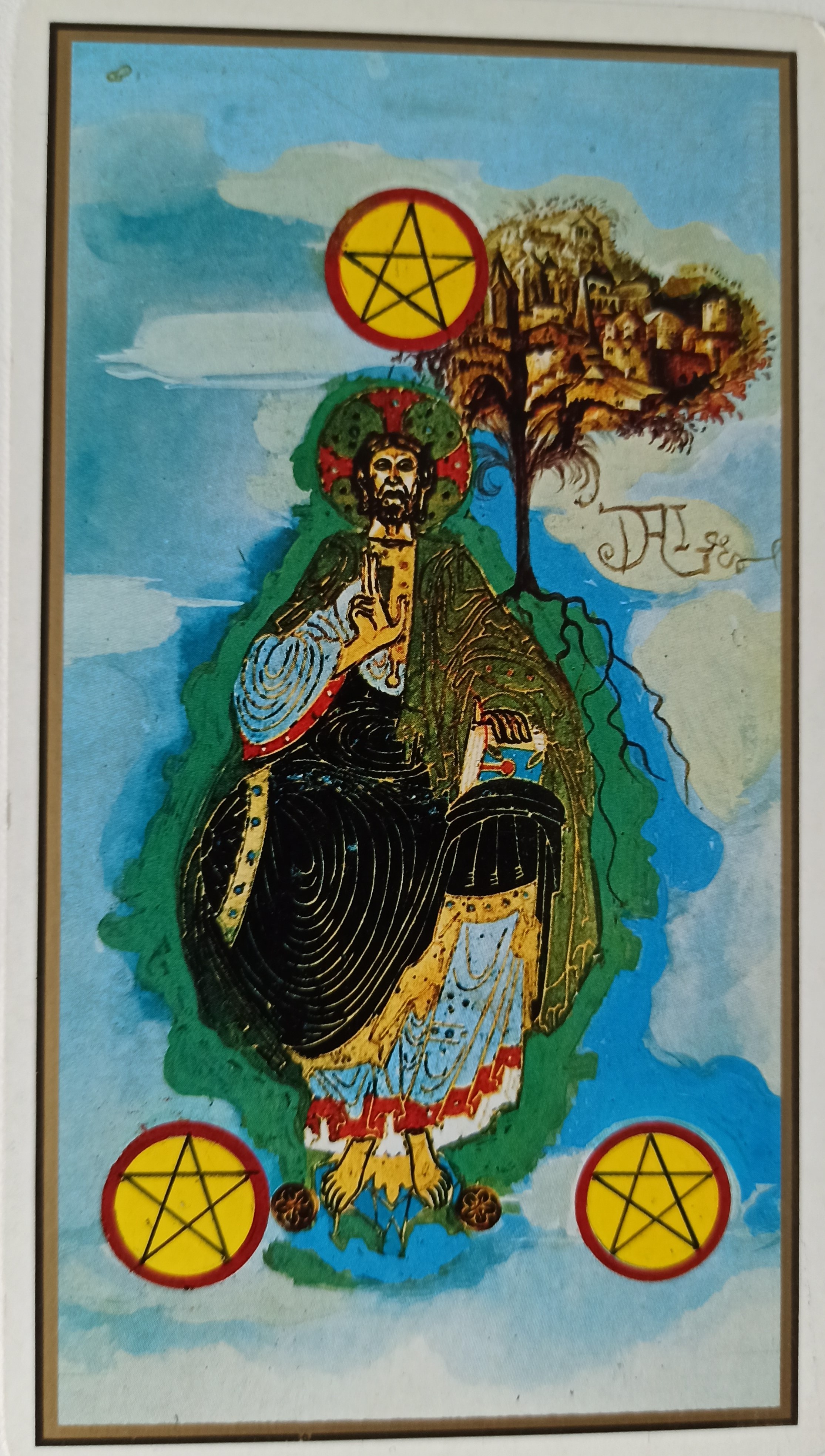 En el 3 de oros se ve la imagen de Dios Be.Iezus